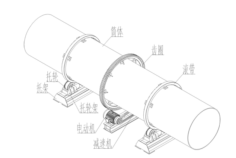 本機是將粉狀原料加工成顆粒的一種設(shè)備,適用于有機無機復(fù)混肥等高含氮量產(chǎn)品。 結(jié)構(gòu):本機由機架、滾筒、